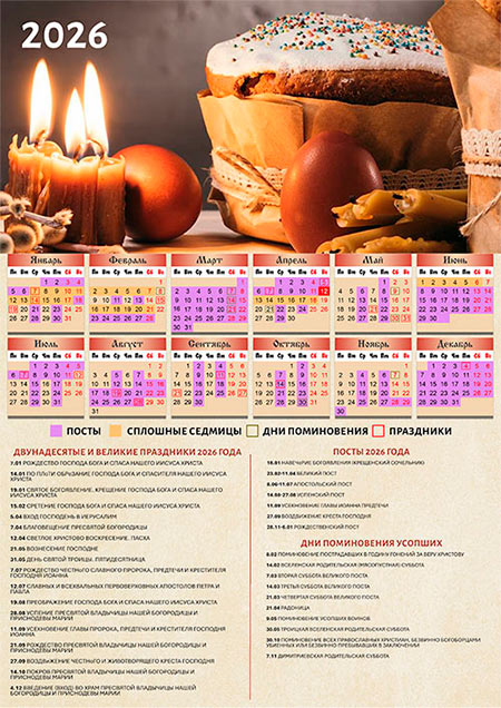 Настенный церковный календарь на 2026 год - Пасха