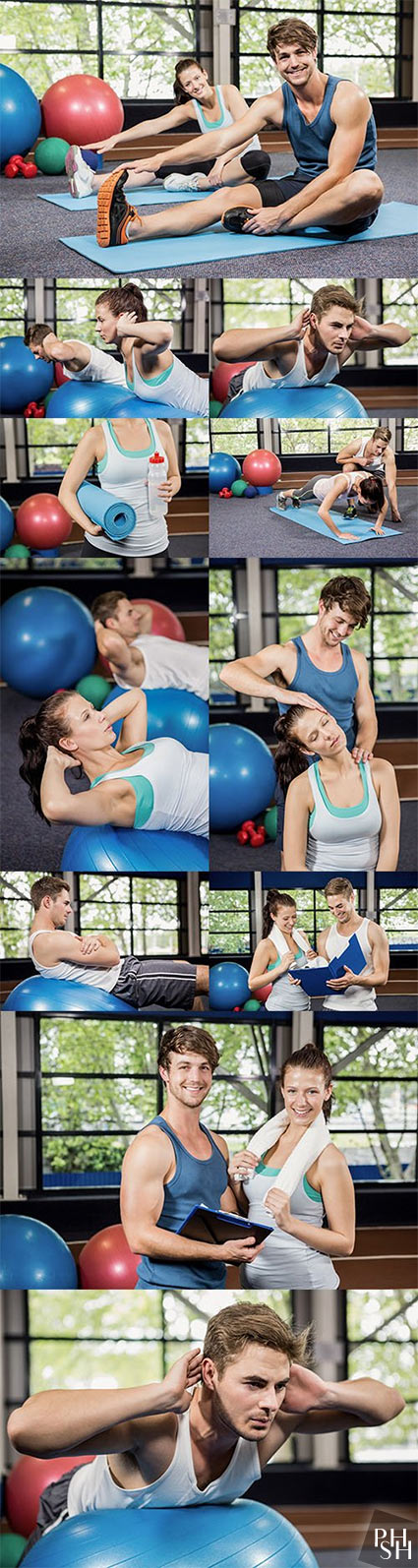 Fitness studio occupation with coach on ball
