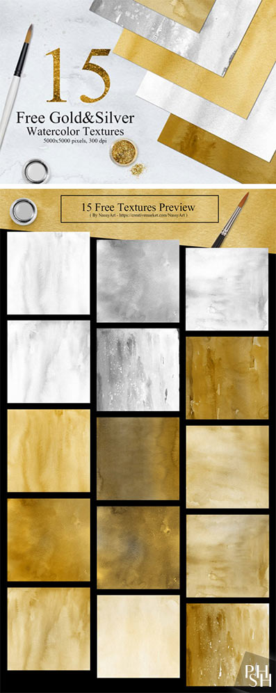 Золотые и серебряные акварельные текстуры - растровый клипарт