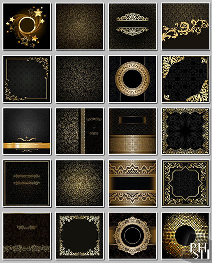 Темные фоны с золотыми узорами для оформления приглашений и других творческих работ. Сборка №8