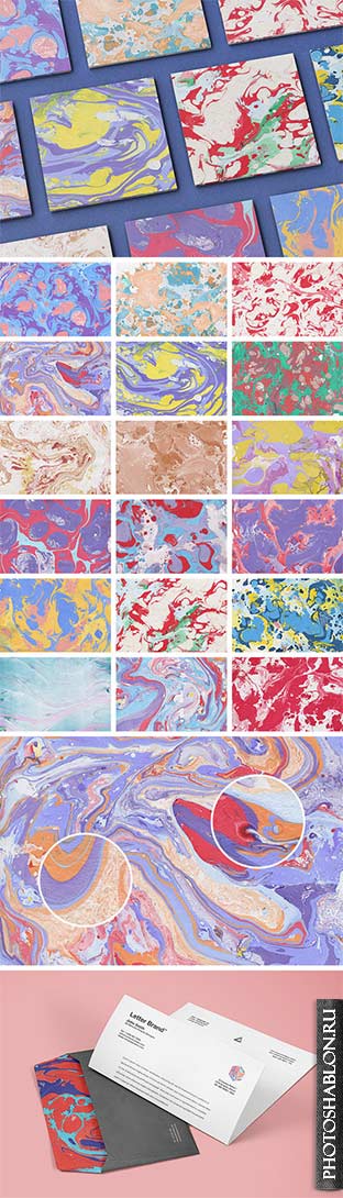 Текстуры цветной мраморной бумаги - Растровый клипарт