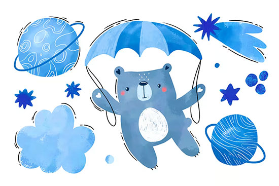 Cartoon Bear on Aircraft. Sky Elements. Travel N3HC34X