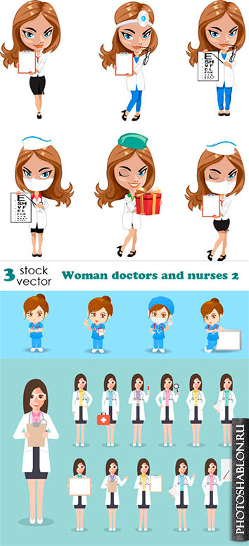 Векторный клипарт - Врачи и медсестры / Vectors - Woman doctors and nurses 2