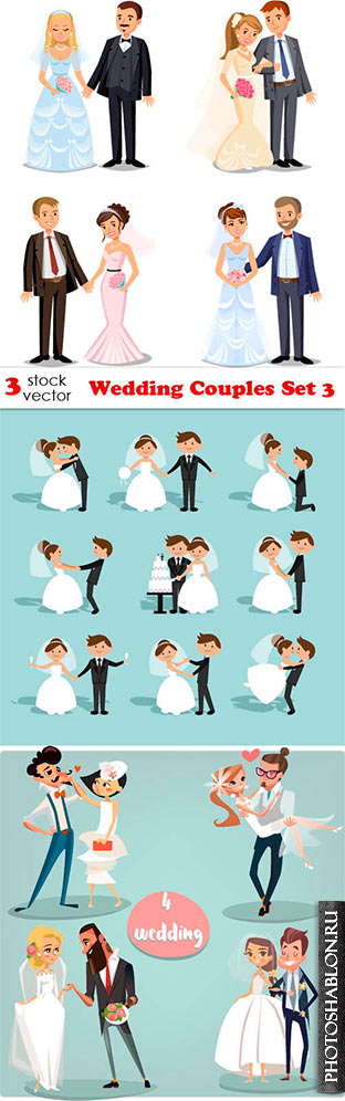 Векторный клипарт - Свадебные пары / Vectors - Wedding Couples Set 3