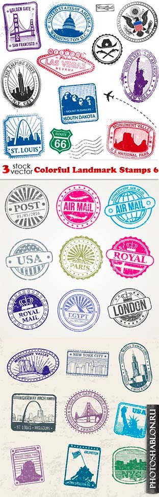 Vectors - Colorful Landmark Stamps 6