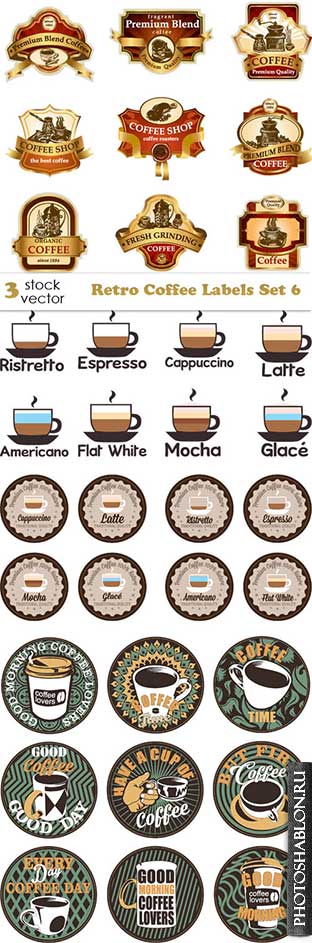 Vectors - Retro Coffee Labels Set 6