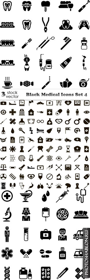 Vectors - Black Medical Icons Set 4
