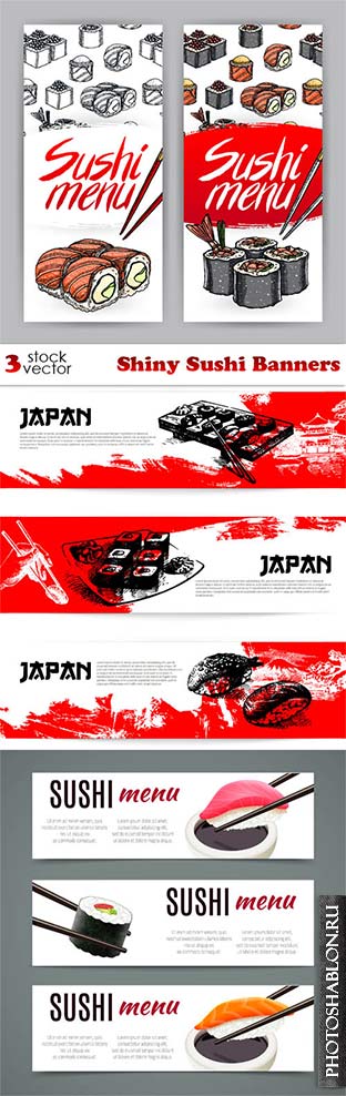 Векторные баннеры - Суши / Vectors - Shiny Sushi Banners