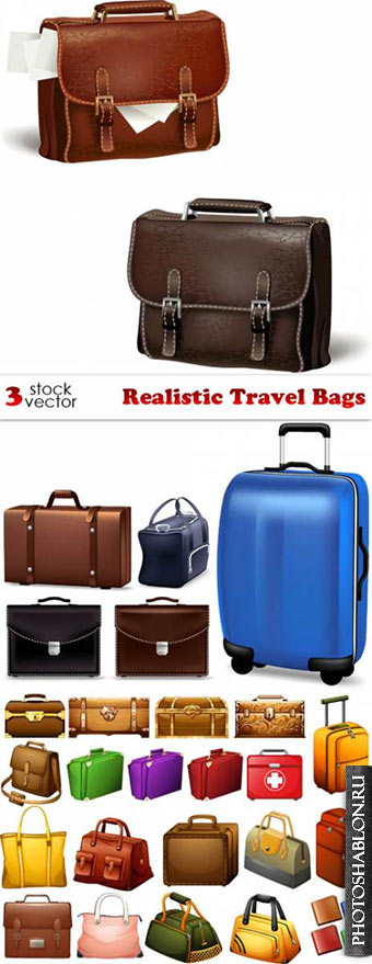 Векторный клипарт - Чемоданы, сумки, портфели / Vectors - Realistic Travel Bags