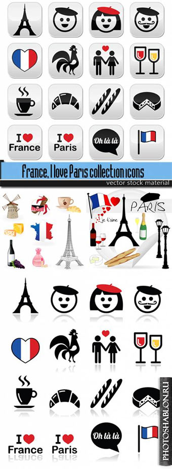 France, I love Paris collection icons