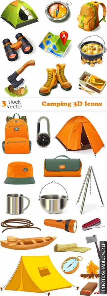 Векторный клипарт - Кемпинг / Vectors - Camping 3D Icons