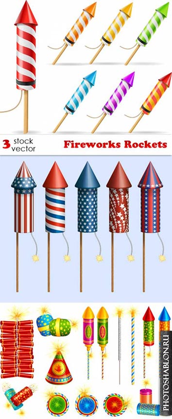 Векторный клипарт - Пиротехника: петарды, ракеты, фейерверки / Vectors - Fireworks Rockets