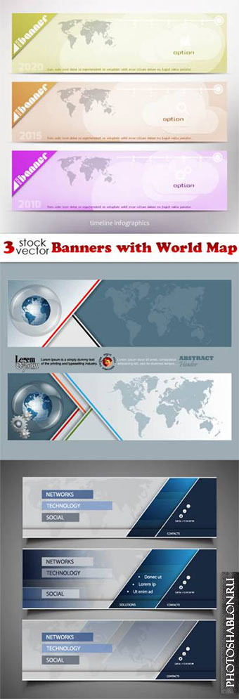 Векторные баннеры с картой мира / Vectors - Banners with World Map