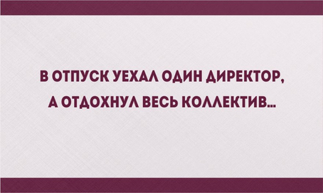 Прикольная картинка про работуТекст на картинке: "В отпуск уехал один директор, а отдохнул весь коллектив..."